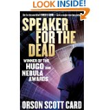 ![]() | Speaker for the Dead | It is 3,000 years since the end of the Bugger war and mankind has spread out to 100 different worlds. On only one have they found sentient life, an apparently primitive race known as the Piggies. One small human colony has been established on their planet but only minimal interaction is allowed with the Piggies to prevent any impact on their natural evolution. But when two xeno-biologists are the victims of ritualistic killings at the Piggies' hands (trotters?) their families call for a speaker for the dead - and who should turn up at their request? Our old friend Ender, who due to the relativistic effects of star-travel, is not 3,000 years old, but only 35. | Hmmm. Quite interesting. |